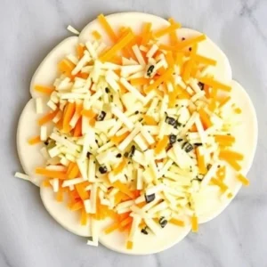 - Layer the Cheese: Sprinkle the mozzarella cheese as the base, followed by the cheddar, Parmesan, Gorgonzola, Fontina, and provolone cheese. Make sure to evenly distribute the cheeses for a balanced flavor.