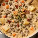 Keywords: Cheeseburger soup, creamy soup, comfort food, ground beef soup