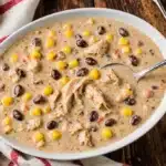 Easy Crock Pot Cream Cheese Chicken Chili is a creamy, flavorful slow cooker recipe made with tender shredded chicken, beans, corn, Rotel tomatoes, and smooth cream cheese.
