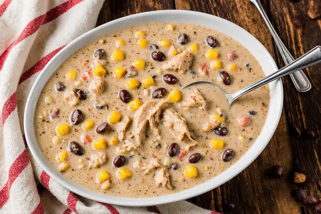 The preparation is simple and stress-free. You start by placing the chicken at the bottom of the slow cooker. Then you add the beans, corn, and tomatoes. A sprinkle of ranch seasoning and spices boosts the flavor instantly. The cream cheese sits on top and melts slowly as the mixture cooks. Once finished, the chicken shreds effortlessly and blends perfectly with the cream sauce. Your kitchen will smell amazing, and the result is a thick, creamy chili ready to enjoy.