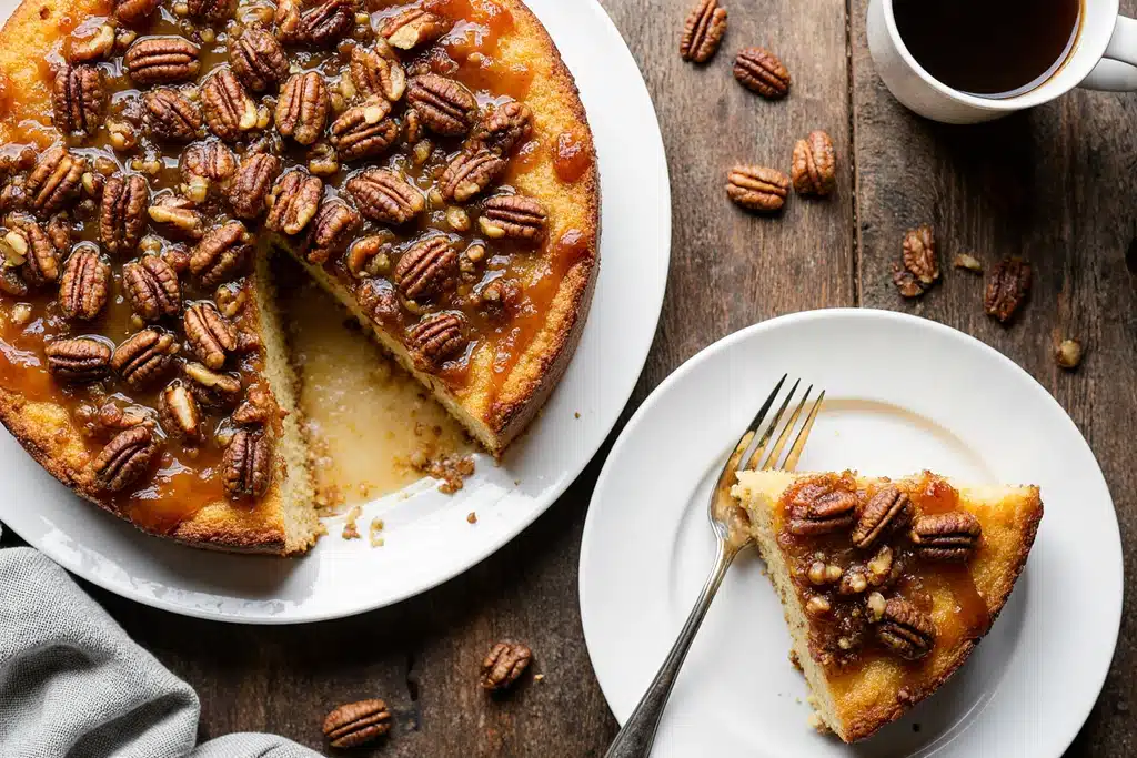 Easy Pecan Upside Down Cake Recipe with Caramelized Topping