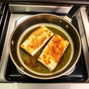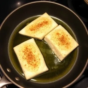 - Sear the Fish: In a large skillet, heat olive oil over medium-high heat. Once hot, add the fish fillets. Sear for about 2-3 minutes on each side until golden brown. You don’t need to cook the fish fully in the skillet, as it will finish cooking in the oven.