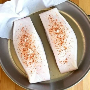 - Prepare the Fish: Pat the fish fillets dry with a paper towel. This helps them sear better and prevents excess moisture during cooking. Season both sides of each fillet with salt, pepper, and paprika.