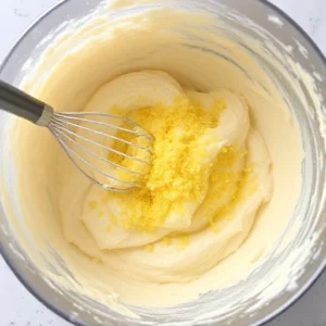 - Add lemon zest and fresh lemon juice to the batter and fold them in.