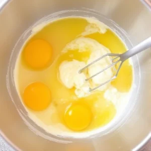 - In a large mixing bowl, combine the lemon pound cake mix, vegetable oil, water, and eggs. Mix until smooth.
