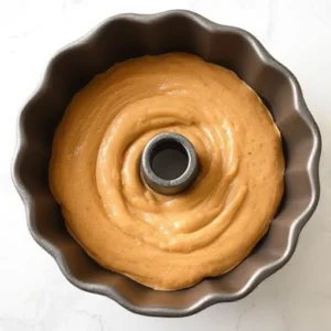 - Pour the batter into the prepared bundt pan and bake for 35-40 minutes or until a toothpick inserted comes out clean.