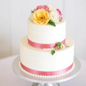 • Ribbons: Wrap satin or lace ribbons around the base of the tiers for a romantic and vintage feel.